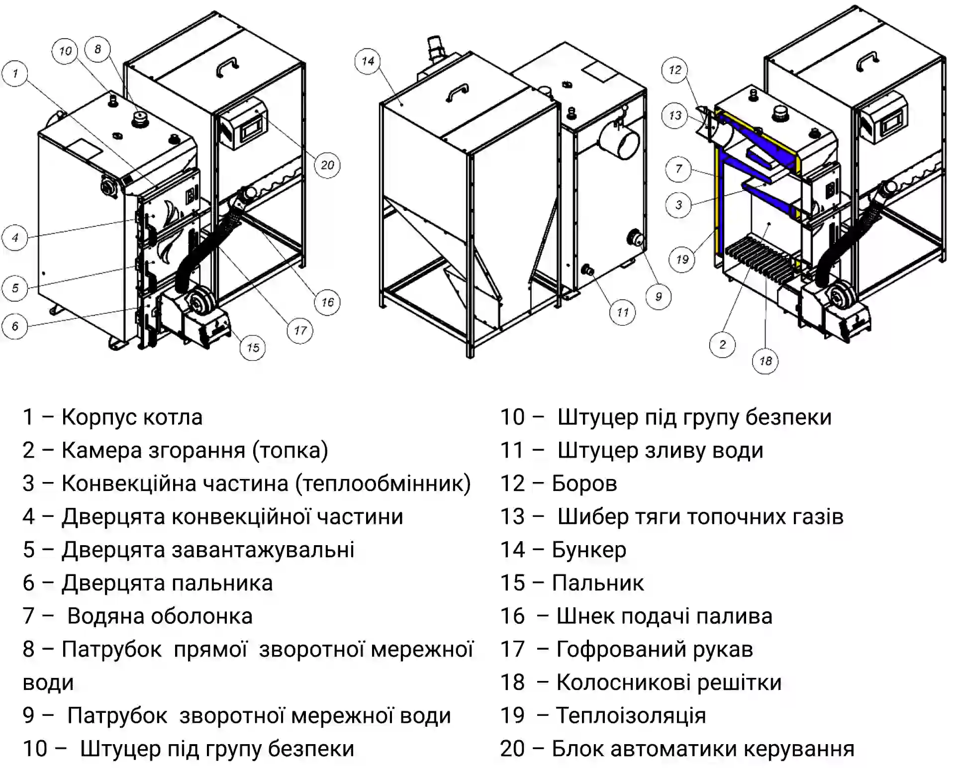 Вузол автоматичної подачі – це серце котла. Він складається з: