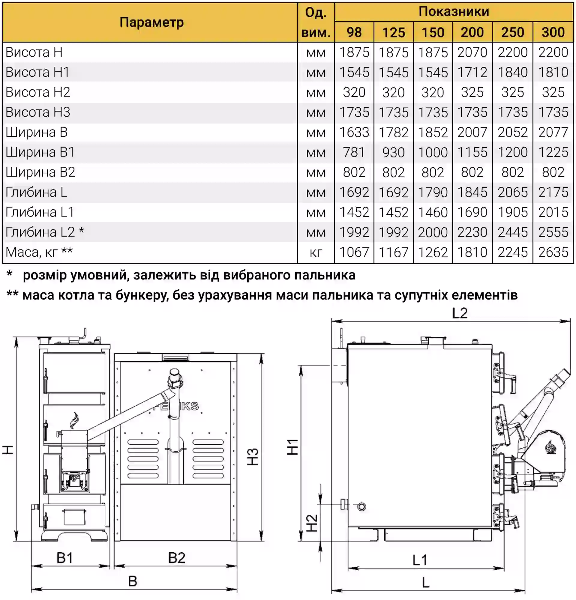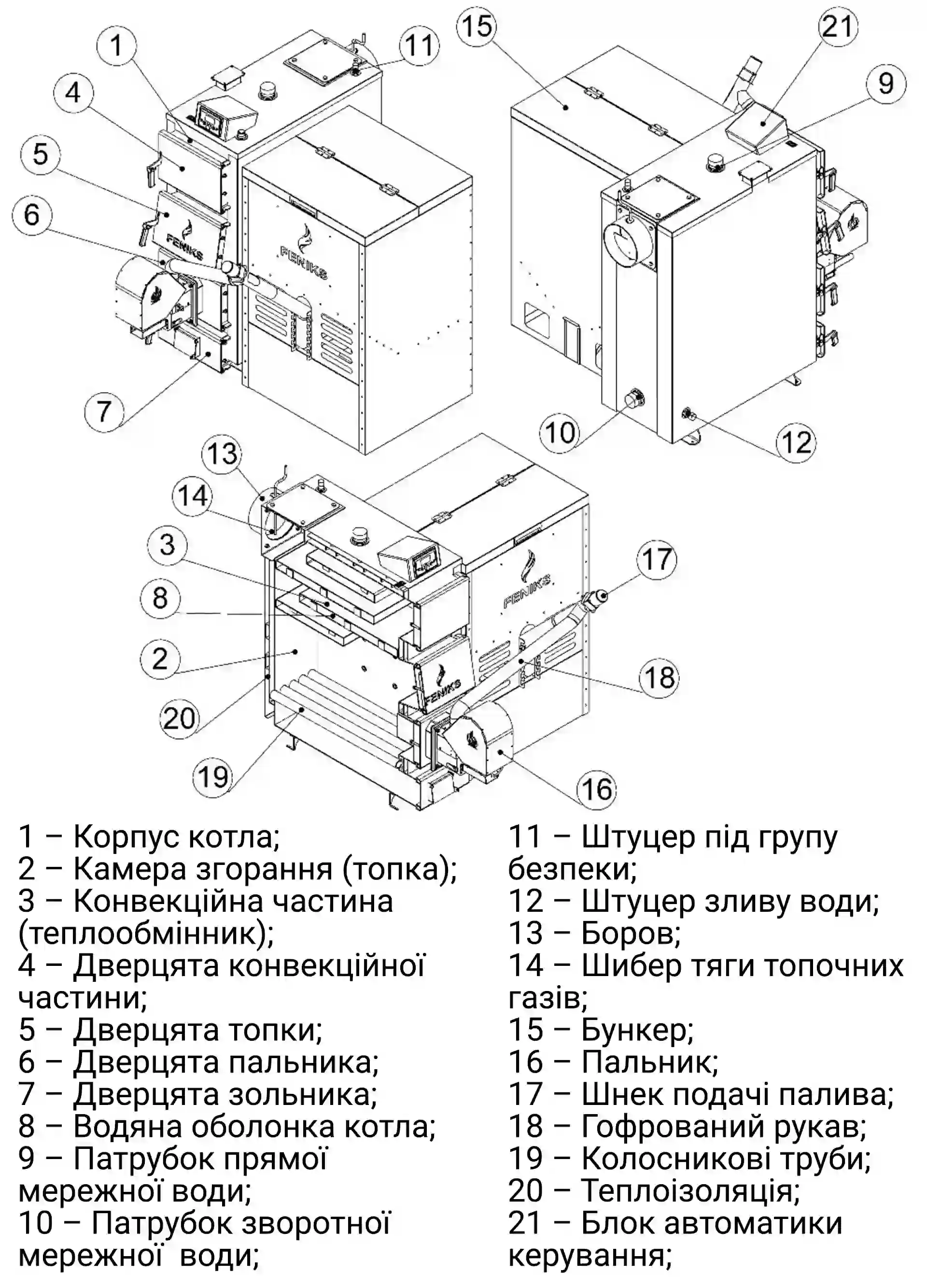 складається з котлової частини і бункера для пелет. Це збірно-зварювальна