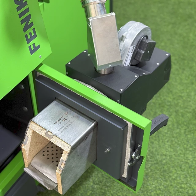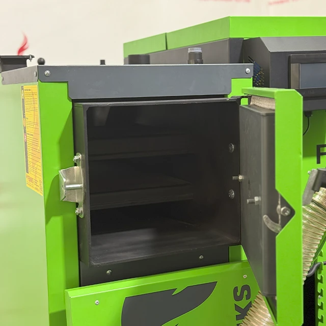 - За потреби котел на пелетах з автоматичною подачею можна переобладнати під ручне завантаження дров, брикетів, відходів деревообробки. Для цього роблять заміну дверцят пальника.