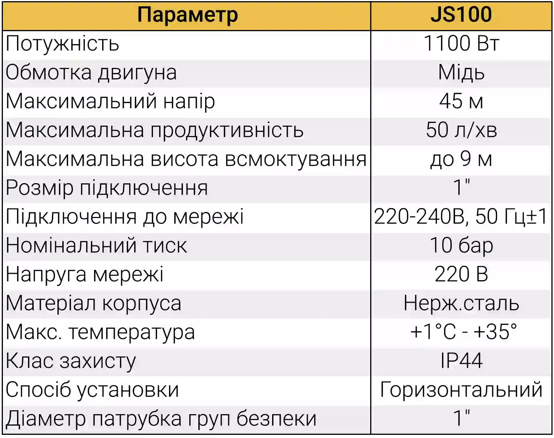 - Потужність 1.1 кВт: Забезпечує швидкий запуск та стабільну роботу системи без "просідань" тиску.