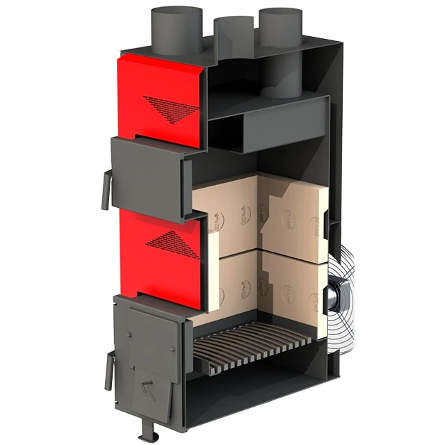 Обидва варіанти забезпечують високу термостійкість і довговічність навіть при інтенсивній експлуатації. У конструкції використані чавунні колосники. Теплогенератор обладнаний: