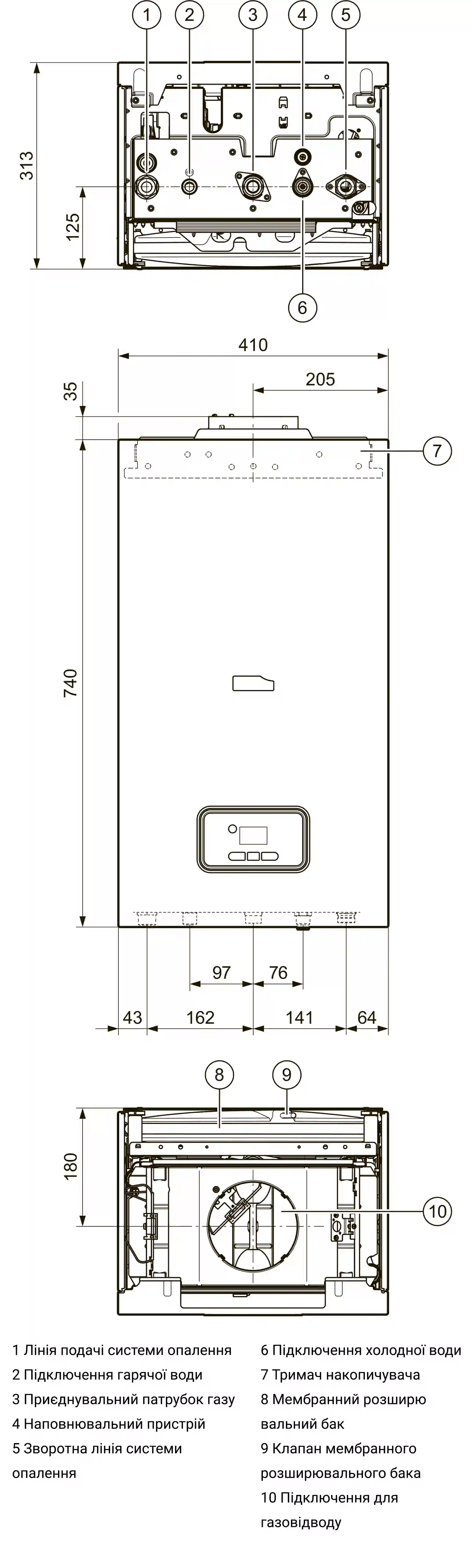 - наявність крана підпитки, доповненим зворотним клапаном, та окремим краном для зливу води;