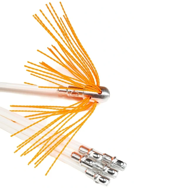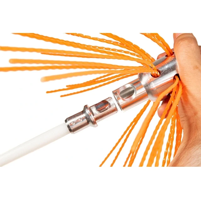 - Нейлонові щітки та гнучкі ручки забезпечують м’яке, але ефективне чищення димоходу, не пошкоджуючи його внутрішні стінки.