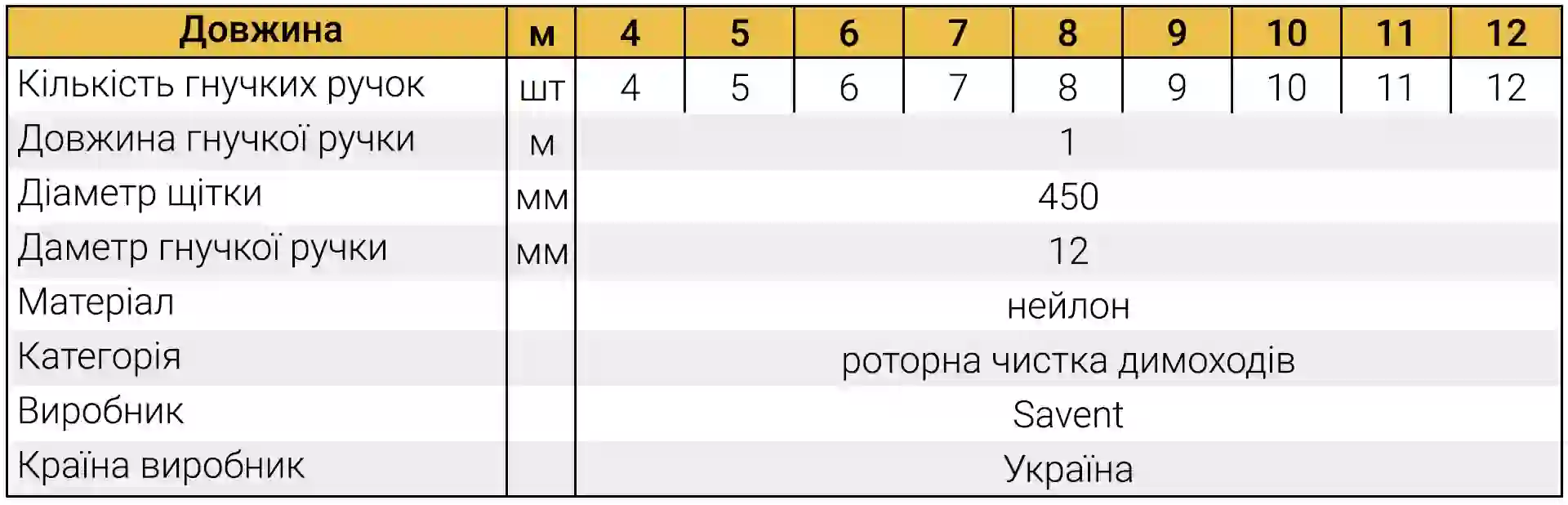 - Щітка діаметром 450 мм дозволяє працювати з різними формами димоходів: круглими, квадратними, овальними чи прямокутними.