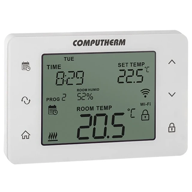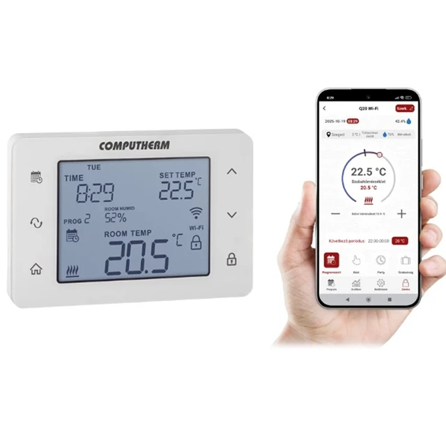 Сучасний будинок потребує сучасних рішень для економії енергії та комфорту. Термостат Computherm Q20 Wi-Fi — це мультифункціональний пристрій, який перетворює звичайну систему опалення чи охолодження на частину "Розумного дому". Ця модель дозволяє керувати кліматом з будь-якої точки світу, де є інтернет, забезпечуючи не лише тепло, але й контроль вологості.