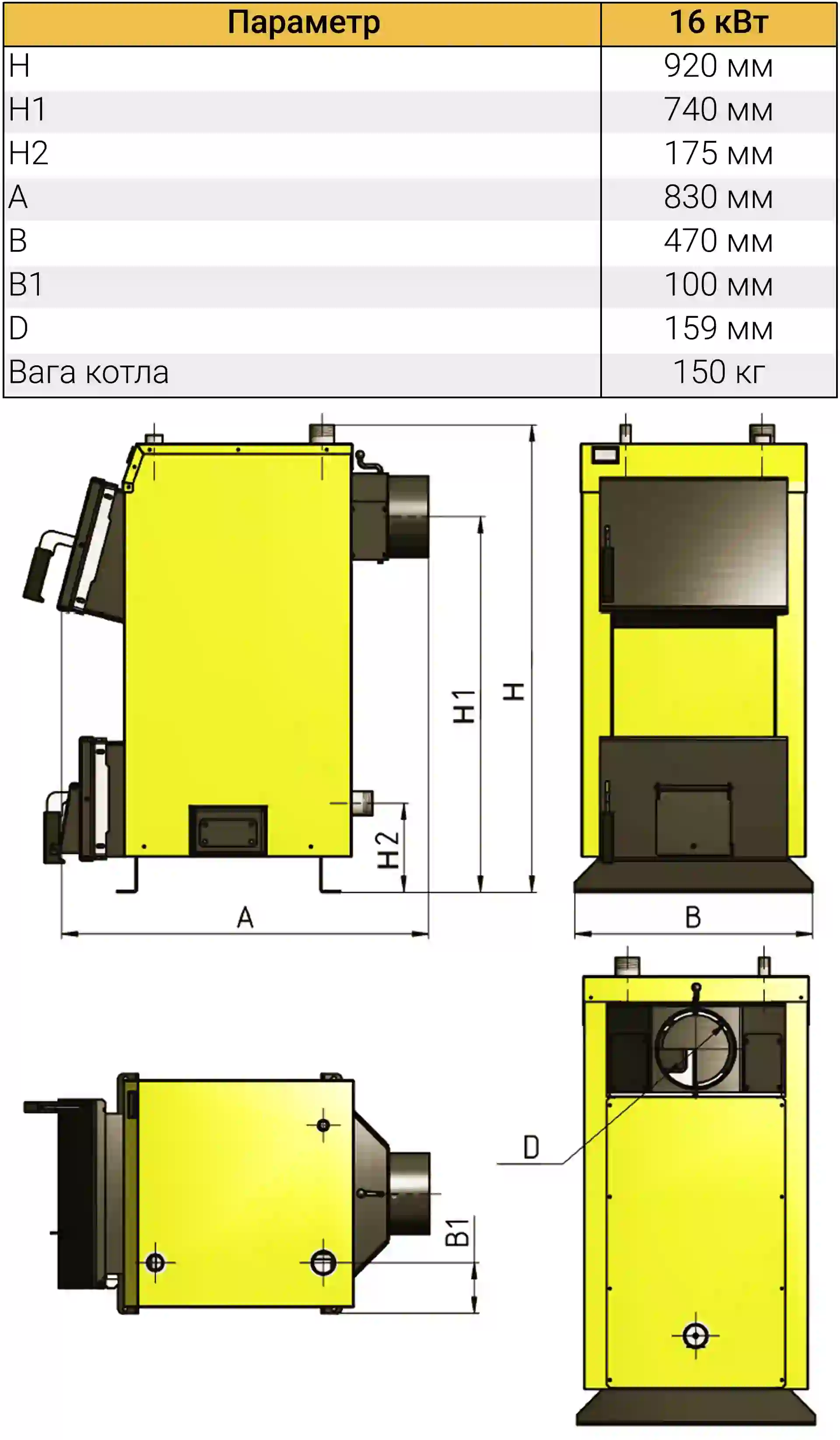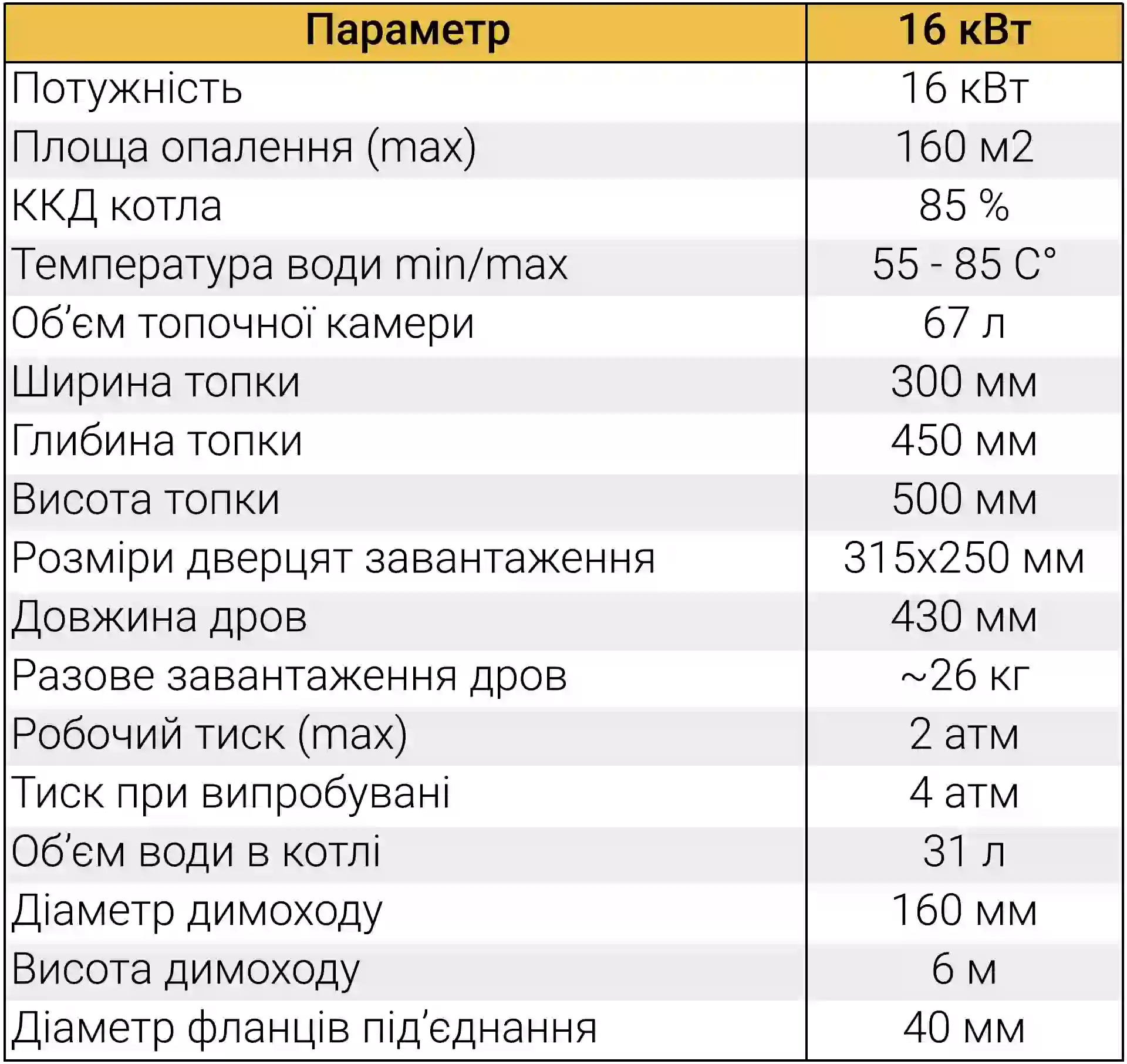 Однією з ключових особливостей моделі на 16 кВт є модернізована конвекційна частина. Вона складається з ряду прямокутних жарових труб, що розташовані безпосередньо над камерою згоряння.