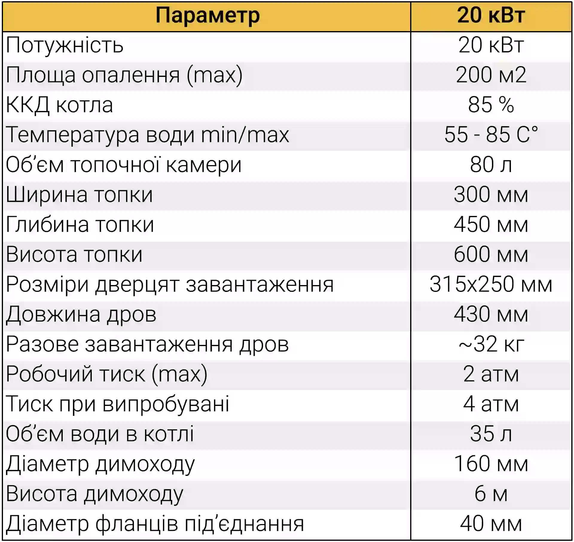 Котел Макситерм 20 кВт розроблений для максимальної зручності користувача. Похилі завантажувальні дверцята дозволяють без зусиль завантажувати об'ємні оберемки дров або велику кількість вугілля.