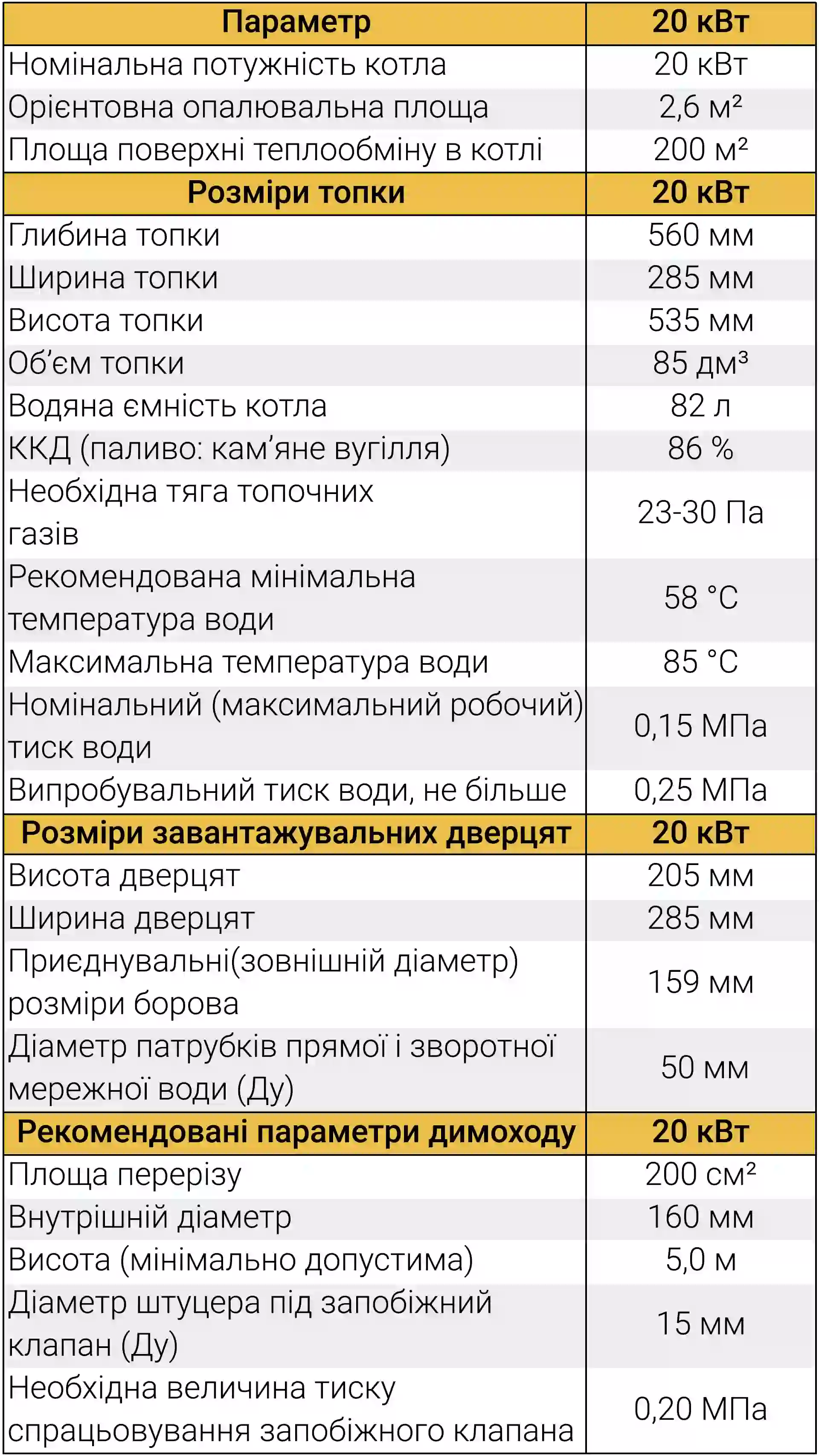 | Характеристика | Параметри моделі 20 кВт |