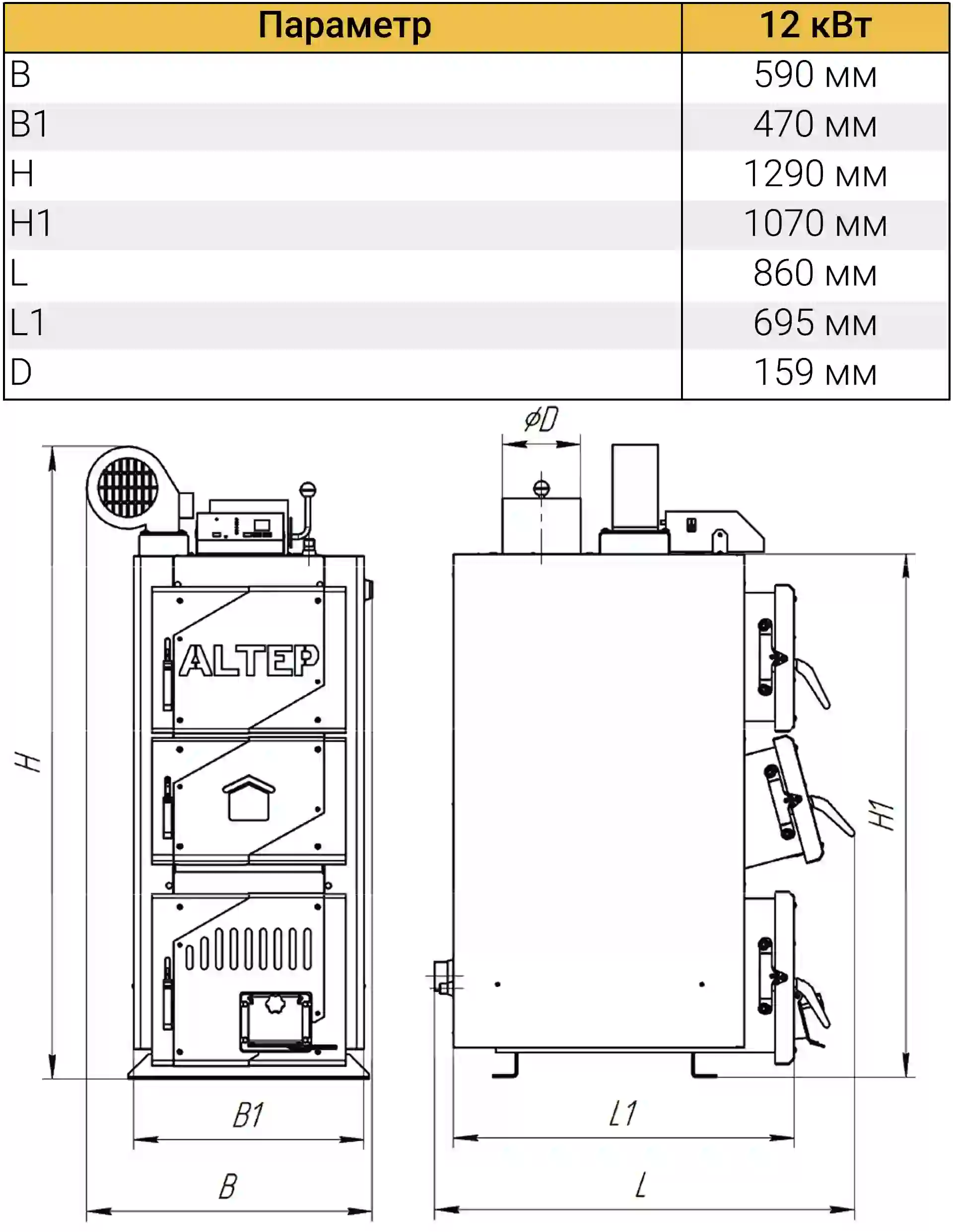 Твердопаливний котел Altep Classic Plus 12 кВт: потужність та енергоефективність