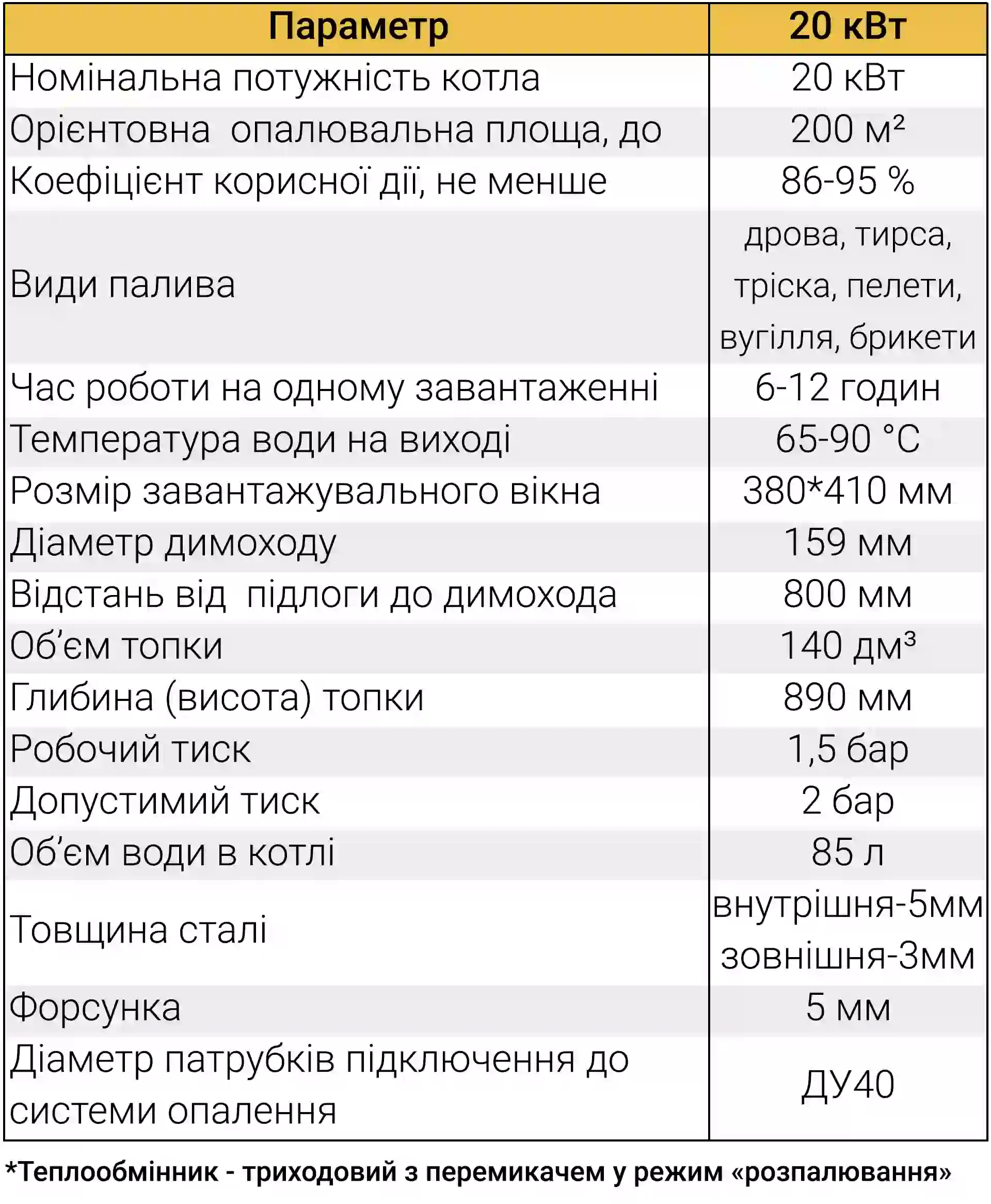 | Тип теплообмінника | Вертикальний, 3-ходовий |