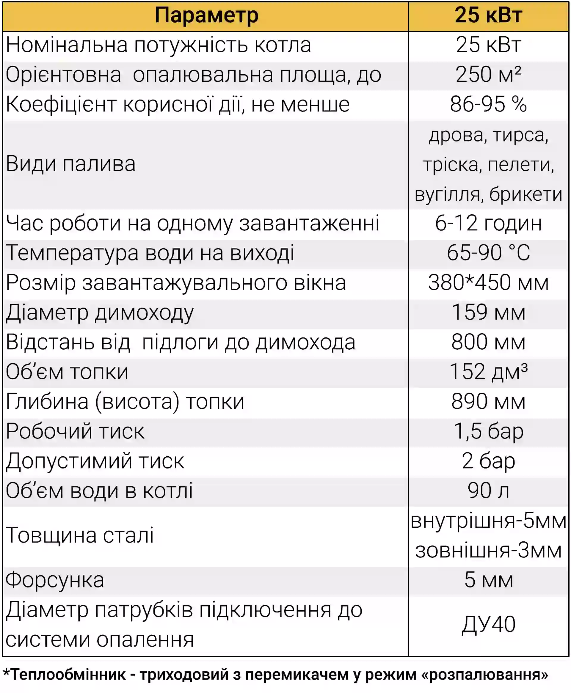 | Тип теплообмінника | Вертикальний, 3 ходи |