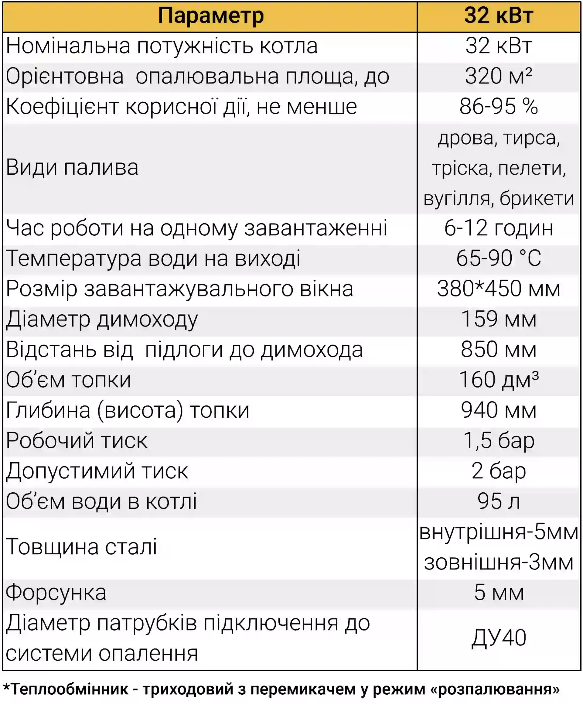 | Матеріал теплообмінника | Сталь 5 мм |