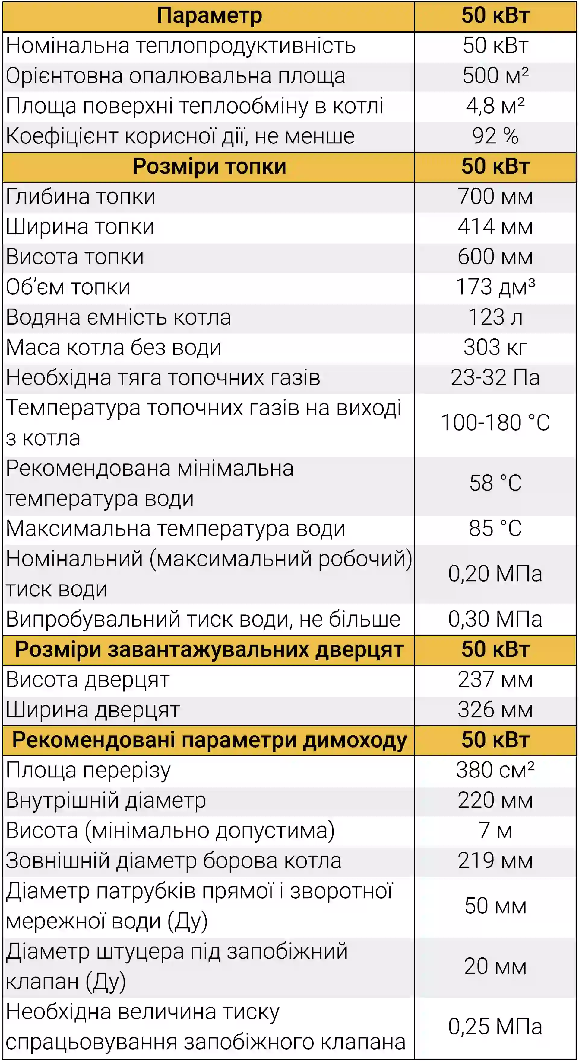 Інвестиція в опалювальне обладнання потужністю 50 кВт окупається вже за перший сезон завдяки високому ККД та невибагливості до палива. Офіційна гарантія 36 місяців підтверджує безкомпромісну якість збірки.