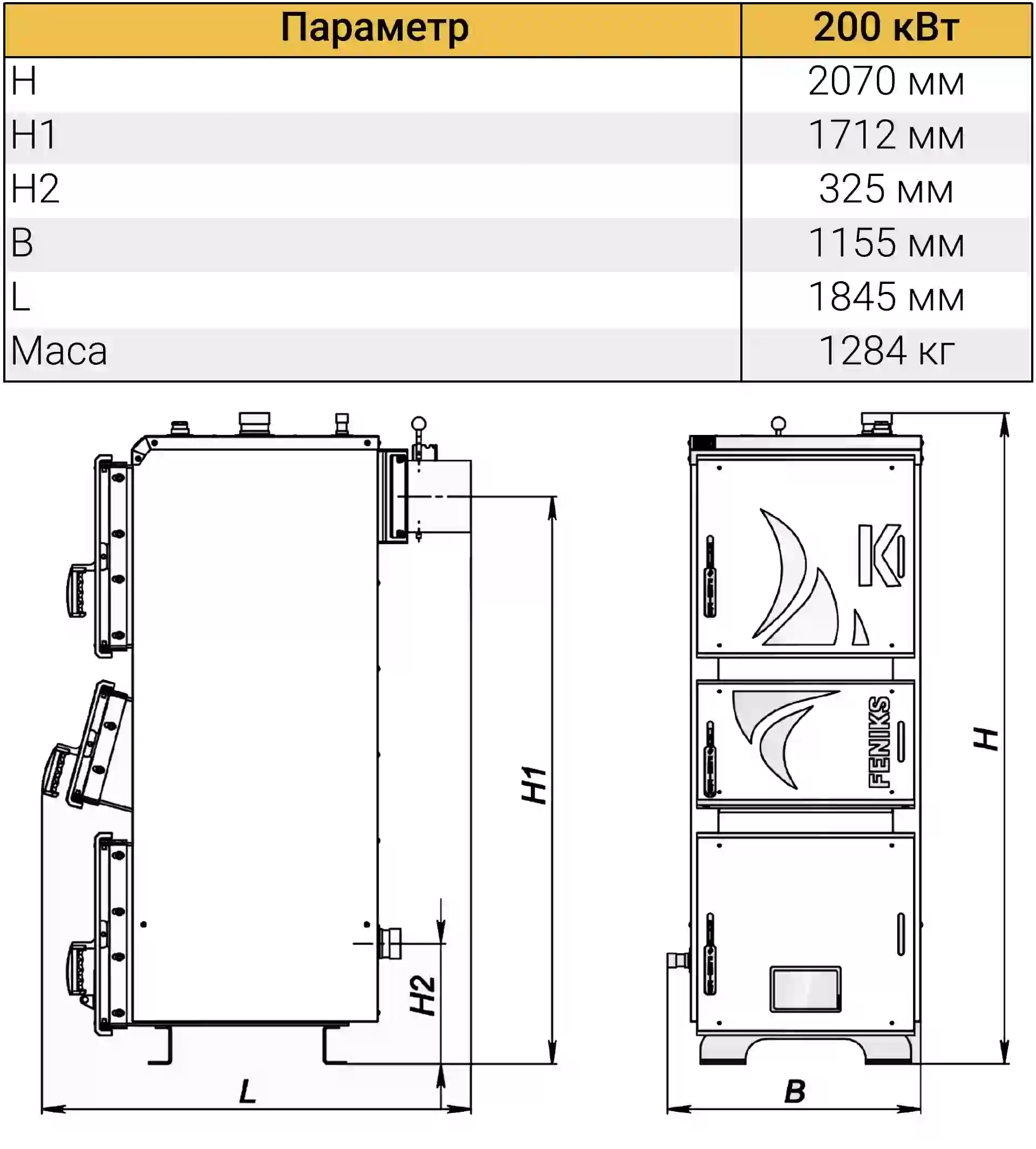 Твердопаливний котел Фенікс К Плюс 200 кВт: Гігантська потужність для вашого підприємства