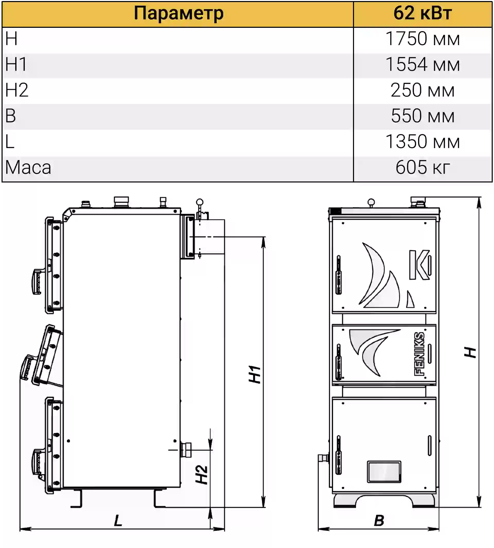 Твердопаливний котел Feniks К Плюс 62 кВт