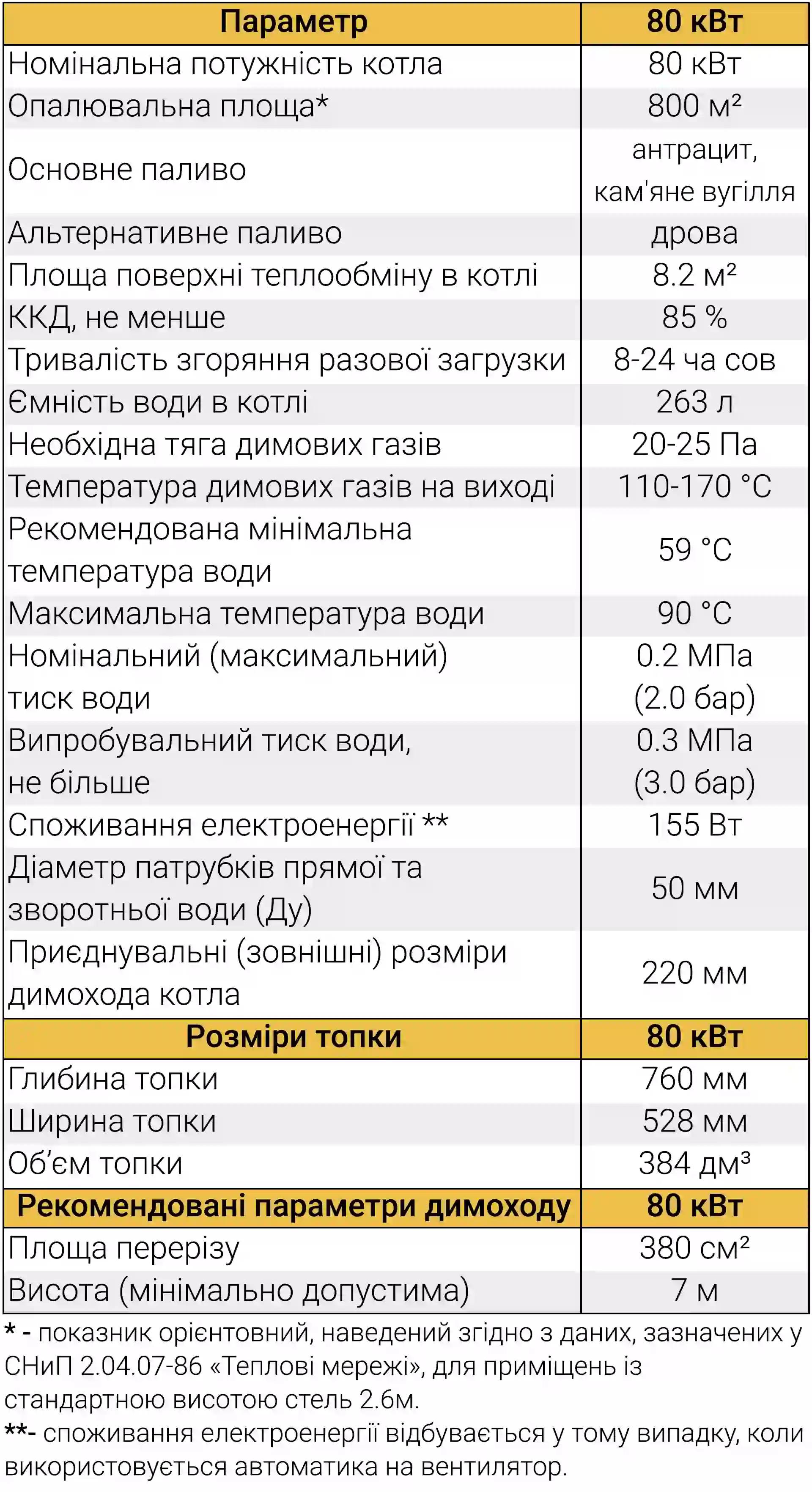 - Потужність: Реальні 80 кВт для обігріву площ до 800 м².