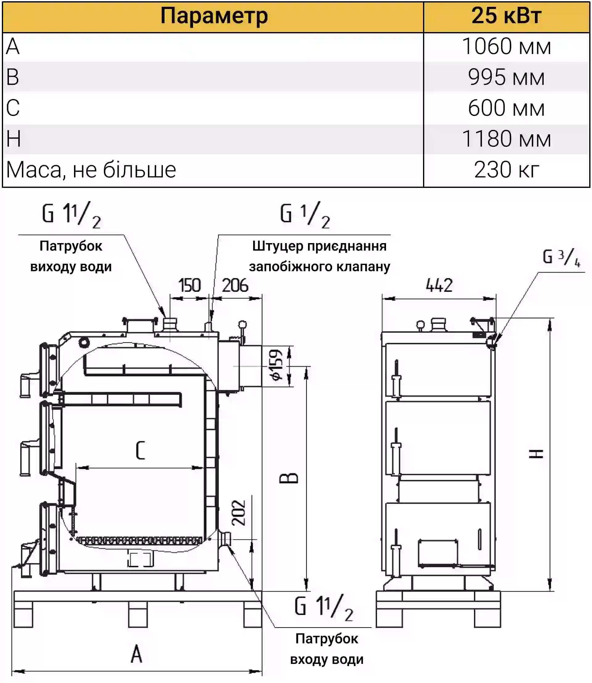Твердопаливний котел Маяк Стандарт Плюс 25 кВт