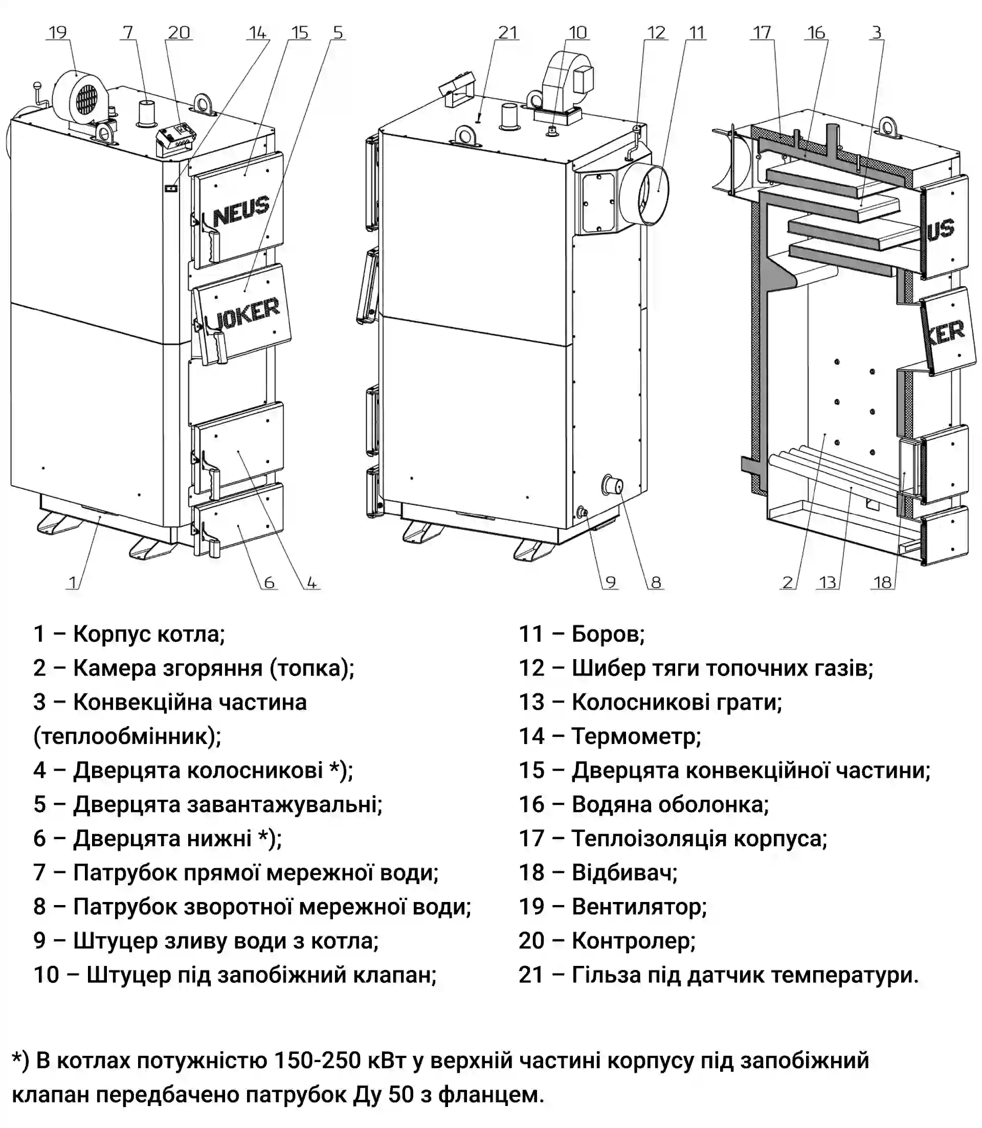 Неус котел Джокер 250 кВт — це потужне серце вашого підприємства. Надійність конструкції підтверджена заводською гарантією 3 роки, а висока ефективність робить його одним з найкращих рішень для промислового опалення в Україні.