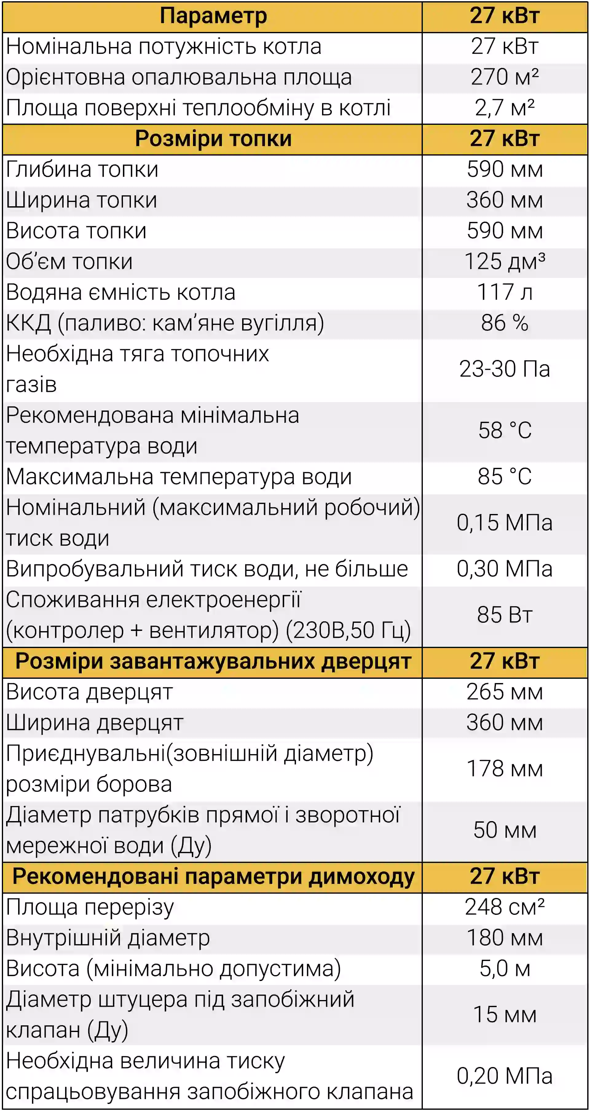 | Характеристика | Параметри (27 кВт) |