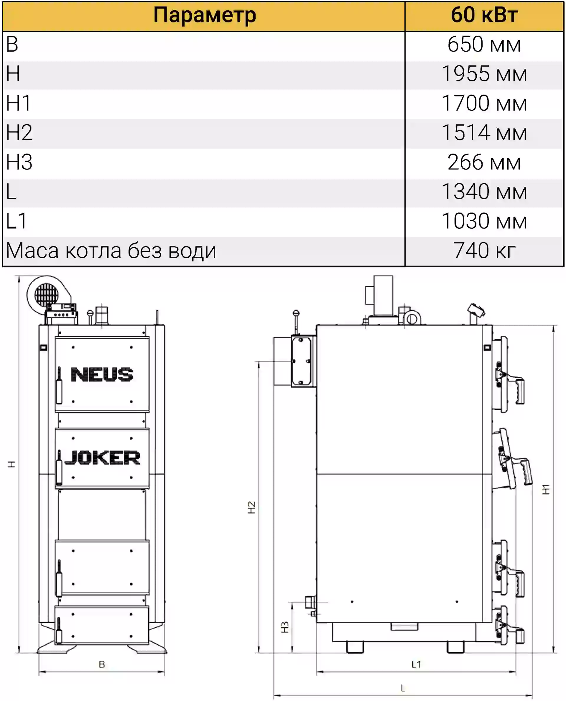 Твердопаливний котел NEUS Джокер 60 кВт: промисловий гігант