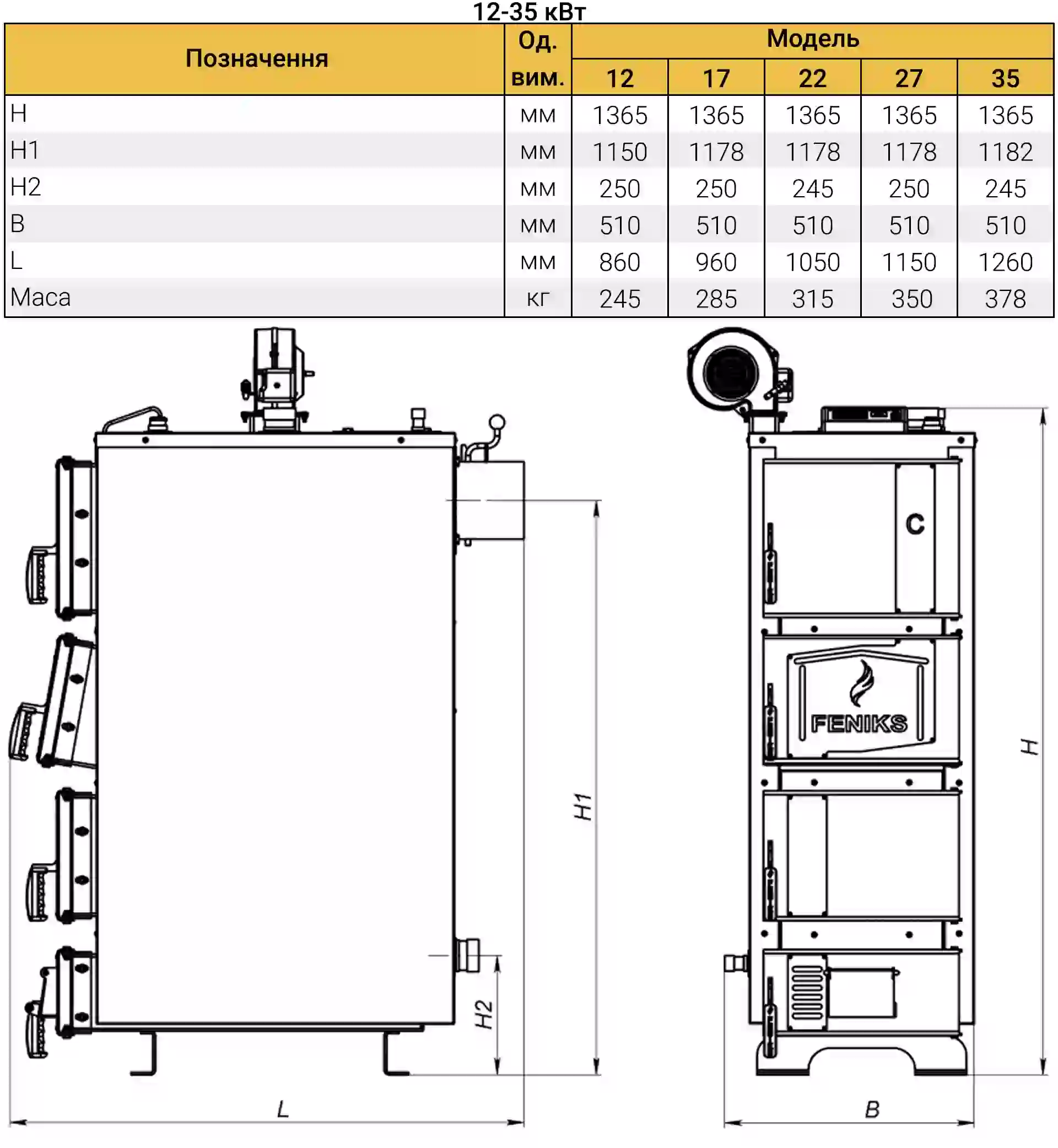 Котел на дровах Feniks С Plus – це збірно-зварний