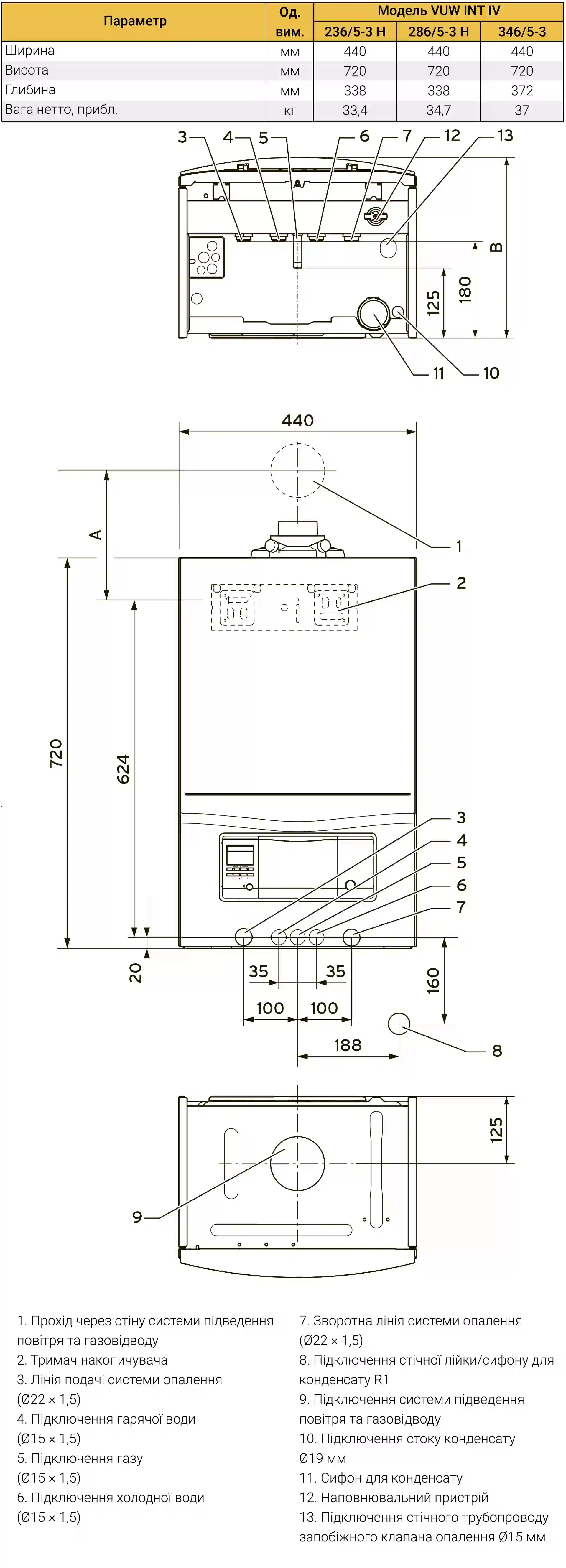 Конденсат прилад відводить через сифон, що знаходиться в