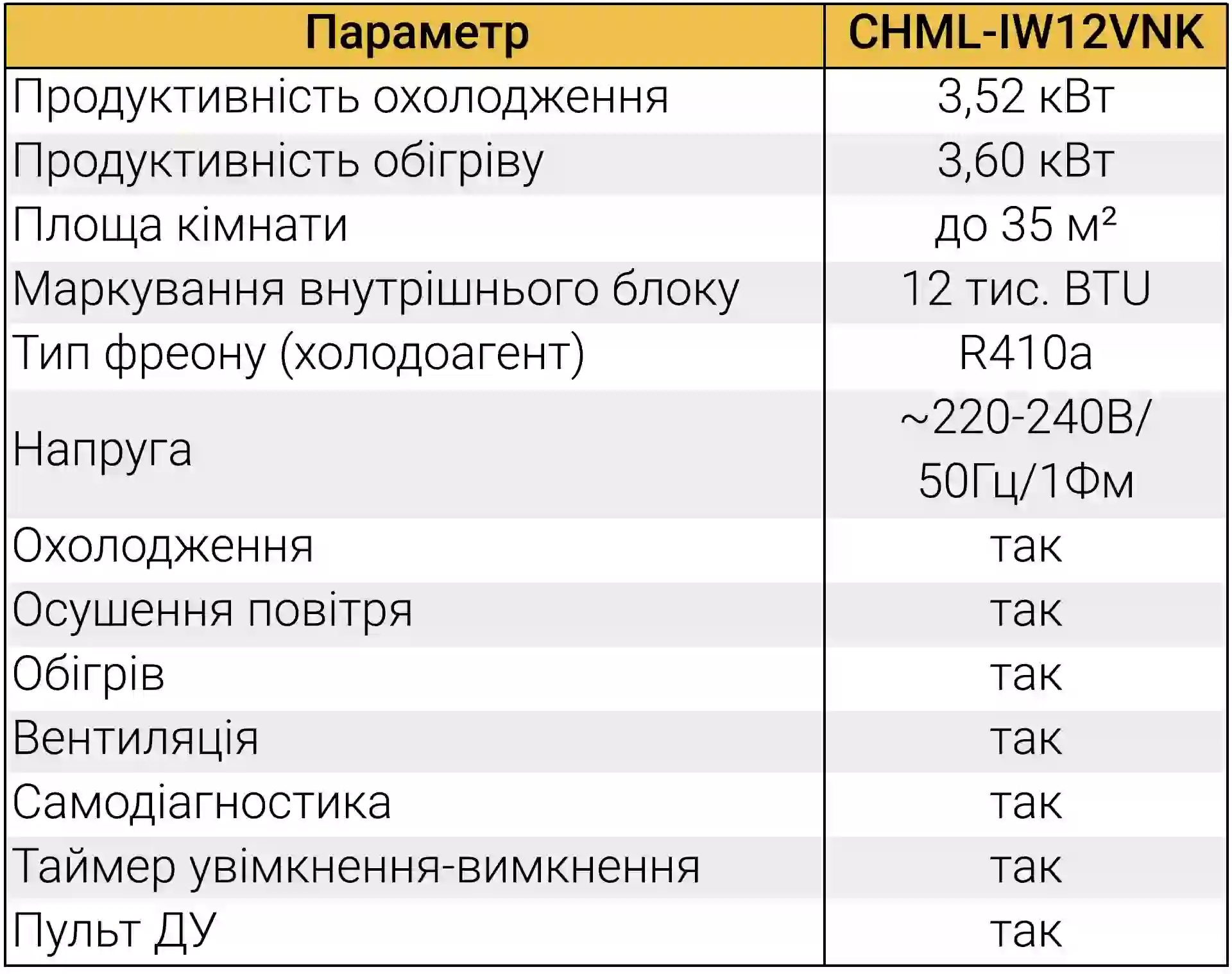 Обираючи кондиціонер Cooper&Hunter, ви отримуєте техніку, перевірену часом та користувачами по всьому світу. CHML-IW12VNK — це поєднання потужності, необхідної для великих кімнат, та витонченого дизайну, який пасуватиме до будь-якого інтер'єру.