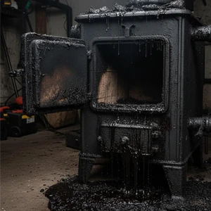 - Ризик займання. Креозот — це легкозаймиста речовина. При високій температурі він може спалахнути прямо в трубі. Температура горіння сажі досягає 1100°C, що може зруйнувати димохід (навіть цегляний) і призвести до пожежі в будинку.