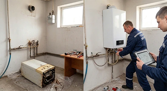 - Роботи. Фахівці газової служби офіційно перекривають газ. Далі ви (або ліцензовані монтажники) знімаєте старий агрегат, вішаєте новий, підключаєте воду та опалення.